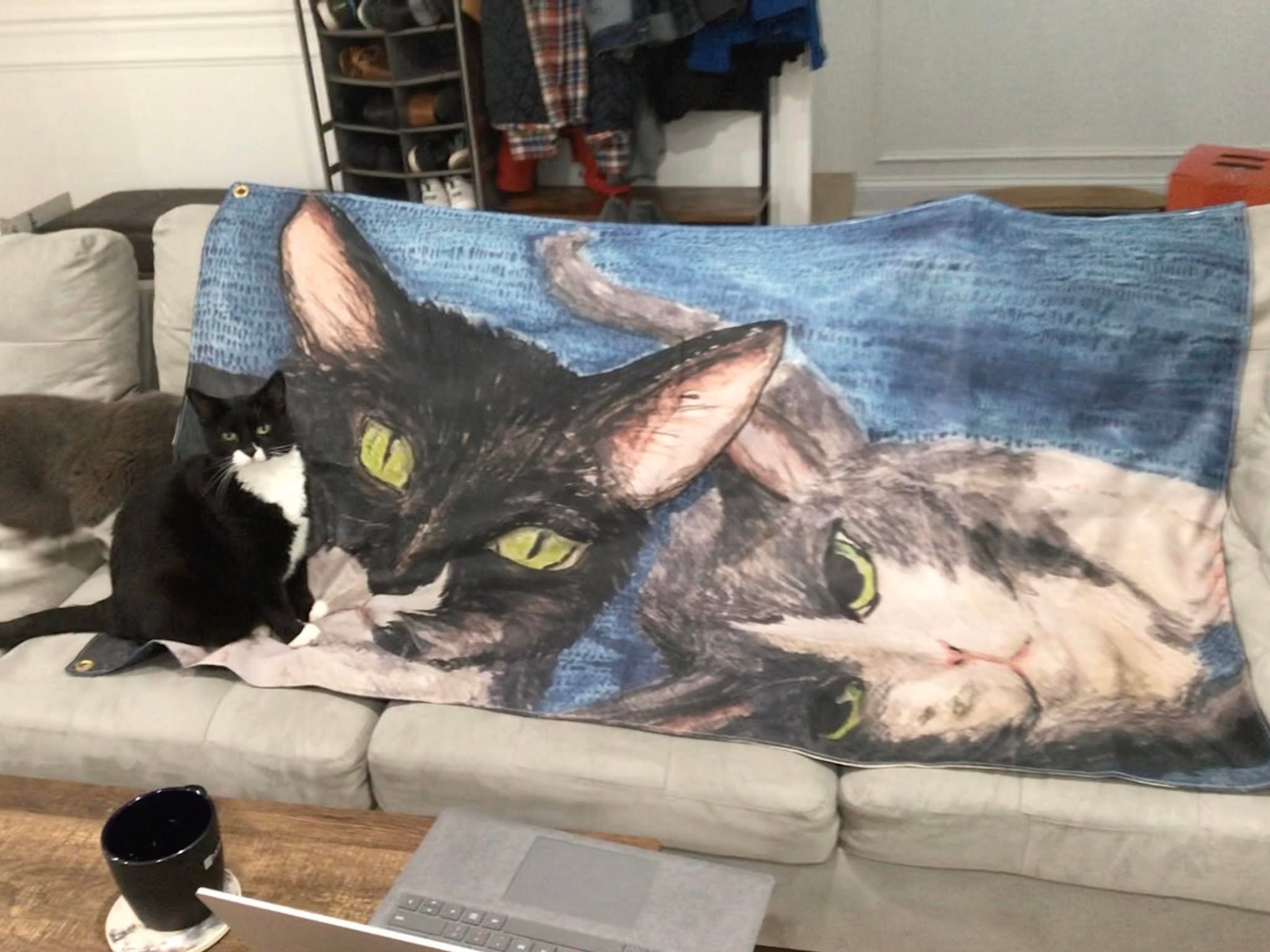 2022, Watercolor, Paper, Small Works, Commissions, Blue, White, Black, Cats