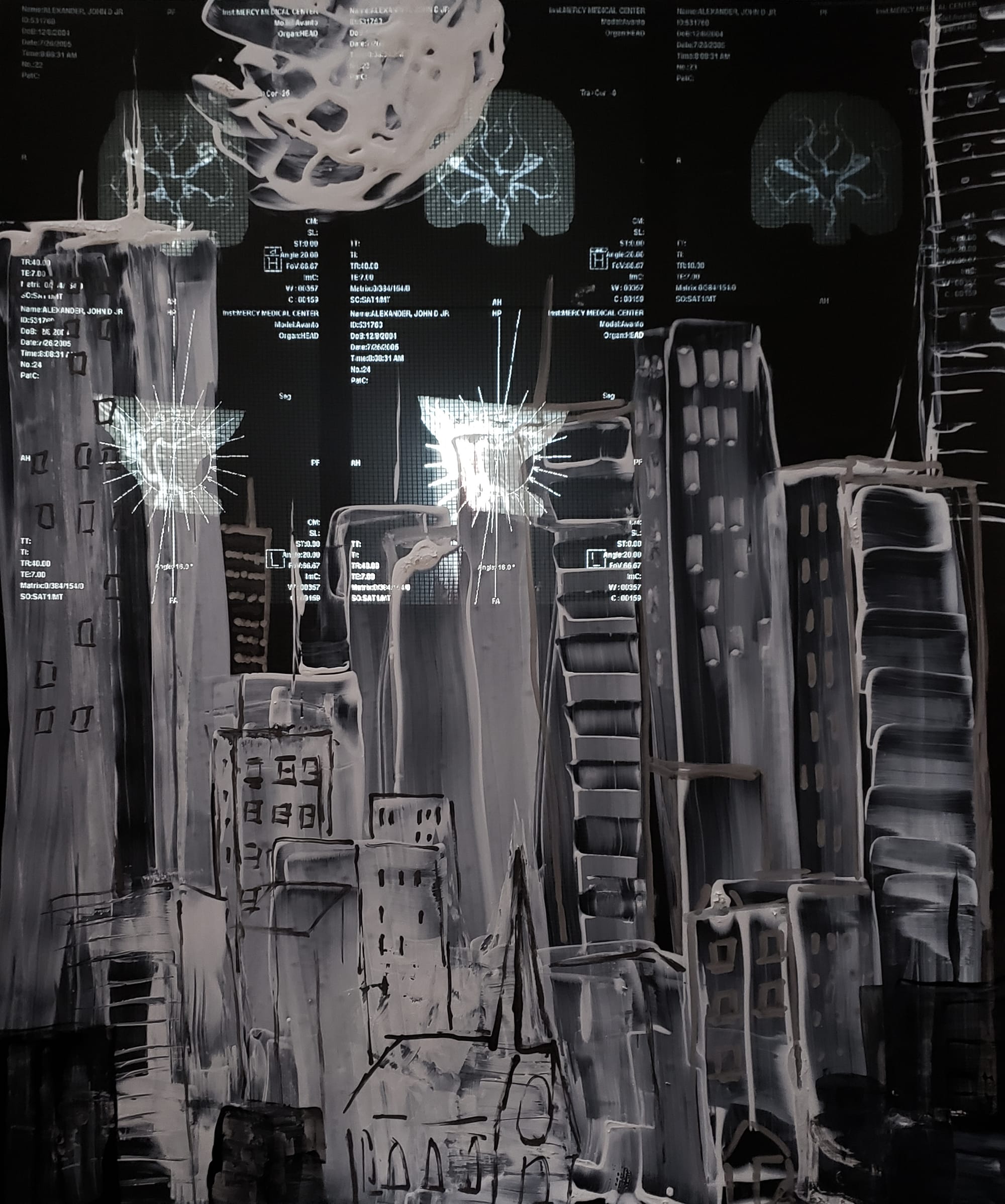 2021, Acrylic Paint, X-Ray, Large Works, White, Black, Cityscapes